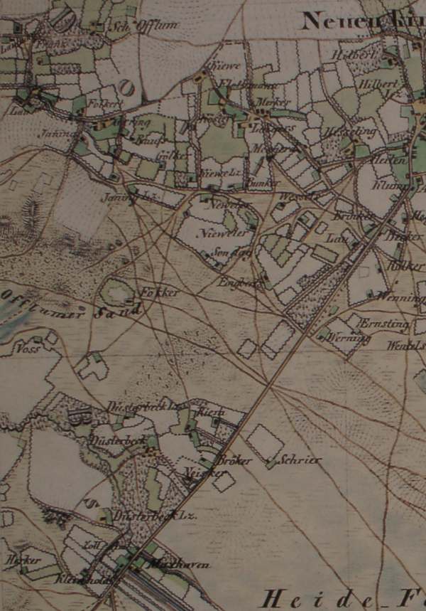 Colonat Schulte Oflum, heute Linnemann Laubuhr Laumann, heute Krümpel Volkert, heute Horstmann Janning, Die Hofstätte ist nicht mehr vorhanden Gehring, Die Hofstätte ist nicht mehr vorhanden Raußen, heute Kreimer Kieve Flothmann, heute Krümpel Merker, heute Nordhoff Kösters Leugers, heute Holling Merscher, vormals Neyers Kotten heute Bitter Nieveler Nieveler (Diepns) Gölker = Gotken, heute Hüwe Janning Fökker, Die Hofstätte ist nicht mehr vorhanden Voss, vormals Mersmann heute Ernsting Merscher, vormals Neyers Kotten heute Bitter Düsterbeck heute Kiewe Neisker (Neißen) heute Heidkamp Bröcker Schräer zuletzt Löbbers